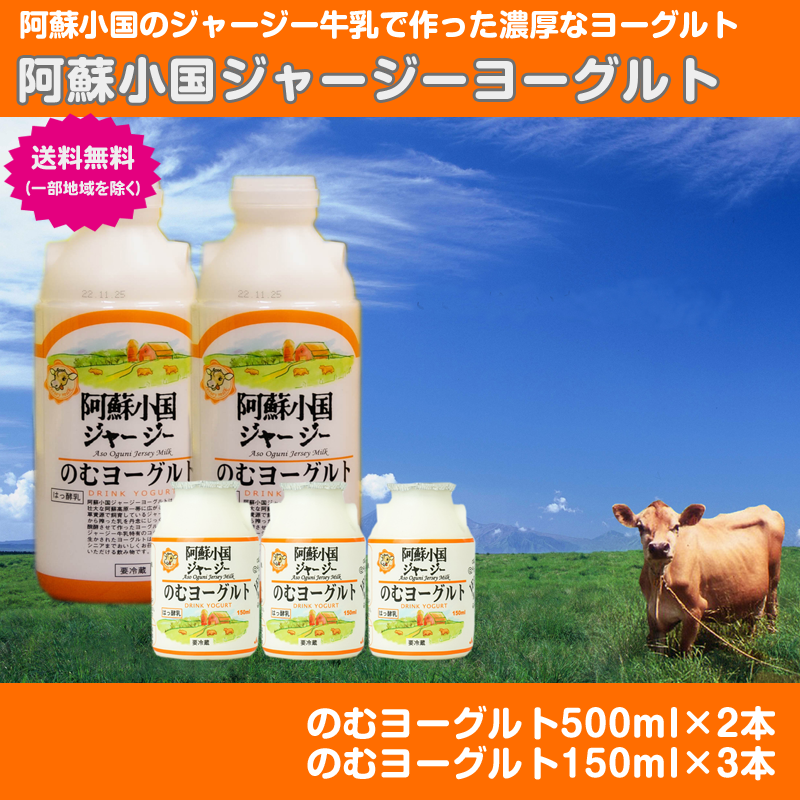 阿蘇小国ジャージーのむヨーグルト500mlを2本と150mlを3本箱詰めにました。