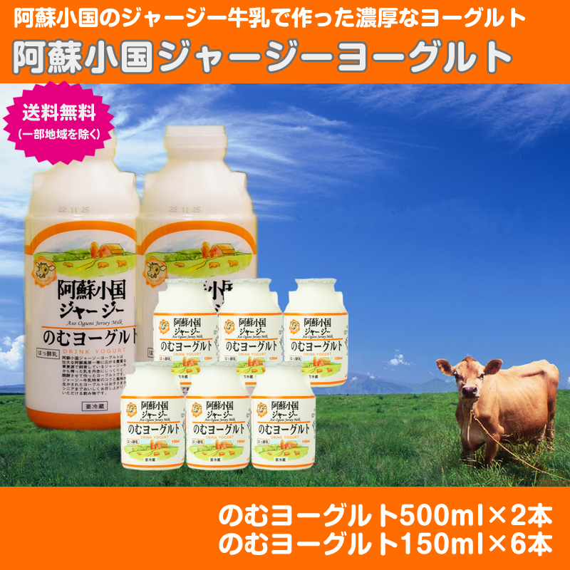 阿蘇小国ジャージーのむヨーグルト500mlを2本と150mlを6本箱詰めにしました。