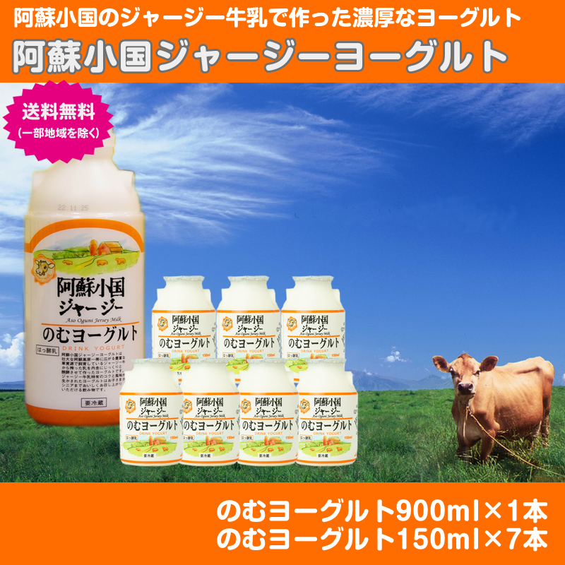 阿蘇小国ジャージーのむヨーグルト900mlを1本と150mlを7本箱詰めにしました。
